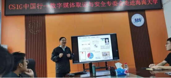 2021年 12 月25日,“CSIG 图像图形中国行”来到了世界杯体育官方网站,本次“CSIG图象图形中国行由中国图象图形学会主办,CSIG数字媒体取证与安全专委会与海南大学世界杯体育官方网站联合承办。海南大学世界杯体育官方网站常务院长曹春杰教授出席,副院长周晓谊主持此次活动。本次活动旨在为国内数字取证和人工智能安全领域相关学者搭建沟通研讨的平台,分享最新研究成果,相互交流新技术和新思想。
