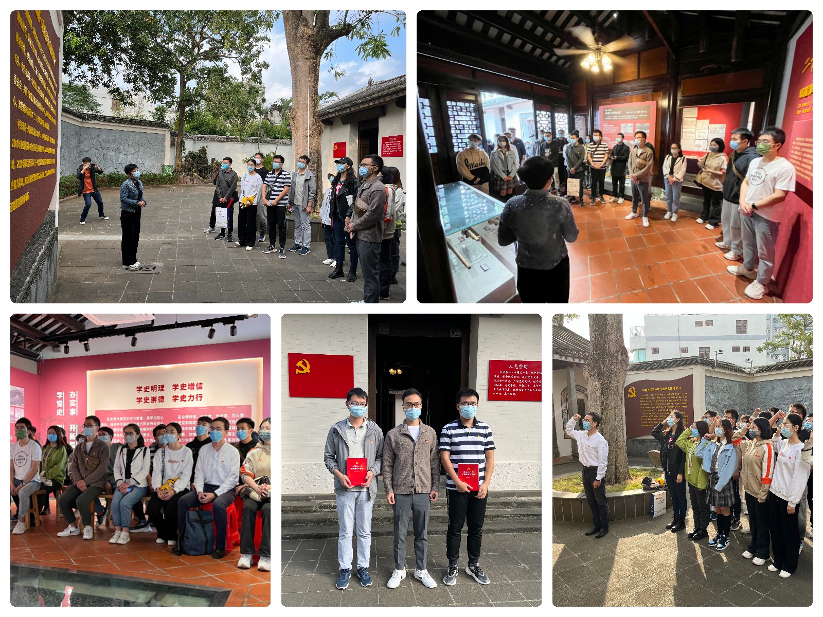 活动第一站来到了中国共产党琼崖地方组织诞生地——中共琼崖第一次代表大会旧址,在这座幽僻的邱氏老宅里酝酿了中共琼崖地方组织最初的模样。琼崖一大燃星火,二十三载旌旗扬。琼崖共产党人从这里走出,到农村建立了自己的武装,创建了革命根据地,谱写了带领琼崖人民英勇不屈进行革命斗争的历史篇章。公祭日后第一缕阳光透过屋檐洒满院落,在九十五年前琼崖革命先烈们出发的地方,博士研究生党支部书记石尧老师为新发展的预备党员佩戴徽章,并向他们赠送《中国共产党组织建设一百年》红色读本,希望他们继承和发扬琼崖革命精神,砥砺初心使命,筑牢信仰之基,以更加昂扬的精神状态勇于担当风险,为实现第二个百年奋斗目标和海南自由贸易港建设不懈奋斗。随后,在鲜红的党旗面前,宣传委员曹凯带领同志们重温入党誓词,铿锵有力的声音响彻庭院,一批海大网安新青年将传承先烈们的精神和意志从这里再次出发,让红色的旗帜永远迎风飘扬。