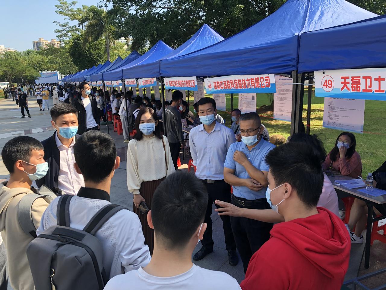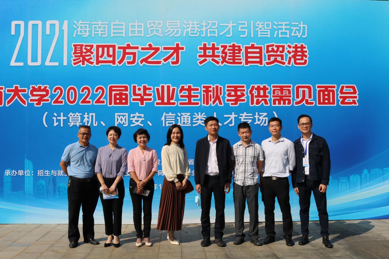 为了进一步搭建用人单位和毕业生供需交流平台,促进学生就业工作,2021年11月14日上午9:00,由海南省人才资源开发局(海南省就业局)与世界杯体育官方网站联合主办,招生就业处、世界杯体育官方网站、计算机科学与技术学院、信息与通信工程学院承办的海南自由贸易港招才引智活动——世界杯体育官方网站2022届毕业生秋季供需见面会(网安、计算机、信通类人才专场)在世界杯体育官方网站三号教学楼前广场举行。三个学院一千余名毕业生参加了双选会。招生与就业处副处长张婷,世界杯体育官方网站党总支书记陈广锐、计算机科学与技术学院院长杨天若、党委副书记(主持学院党委工作)王红英、信息与通信工程学院党委书记蒙秋妍等学院领导来到现场与用人单位和学生交流。