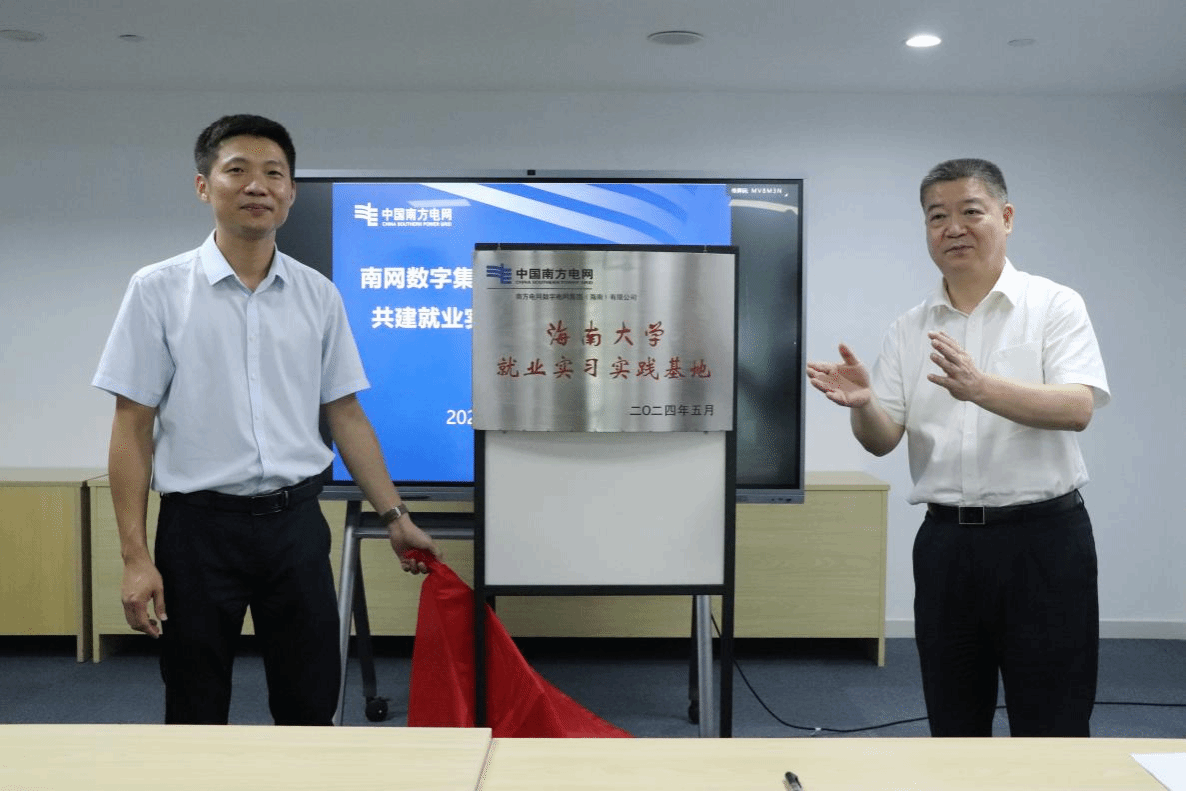 5月31日,世界杯体育官方网站与南方电网数字电网集团(海南)有限公司举行共建就业实习实践基地签约和揭牌仪式。学院党总支书记陈广锐、副院长郭祯,南方电网数字电网集团(海南)有限公司董事长顾志东、副总经理何玮以及教师代表、首批实习学生代表等参加活动。