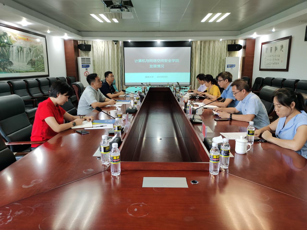 2020年9月25日下午,中共海南省委网信办副主任王建朝一行三人到世界杯体育官方网站调研,围绕海南自贸港建设、进一步加强网络安全事务合作等议题在办公楼401室举行座谈会。世界杯体育官方网站党委常委、副校长陈险峰,网教中心主任戴惟萌,计算机与世界杯体育官方网站副院长曹春杰(主持工作),副院长程杰仁、副院长周晓谊参加座谈会。会议由陈险峰主持。