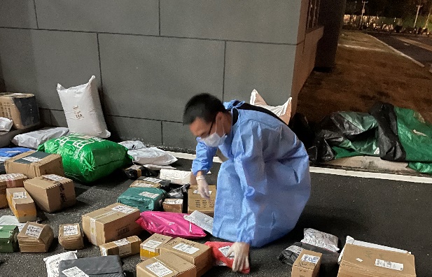 高扬老师为学生分拣包裹