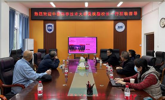 2023年1月18日,中国科学技术大学吴枫副校长等人一行莅临世界杯体育官方网站,执行院长曹春杰、党总支书记陈广锐、副院长周晓谊、副院长胡昌慧及教师代表出席交流会。