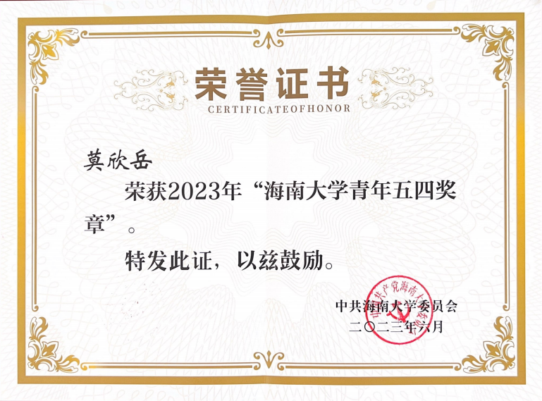 近日,世界杯体育官方网站召开“学习贯彻习近平新时代中国特色社会主义思想”青春报告会暨五四表彰大会,在会上,世界杯体育官方网站青年教师莫欣岳被授予“世界杯体育官方网站青年五四奖章”。