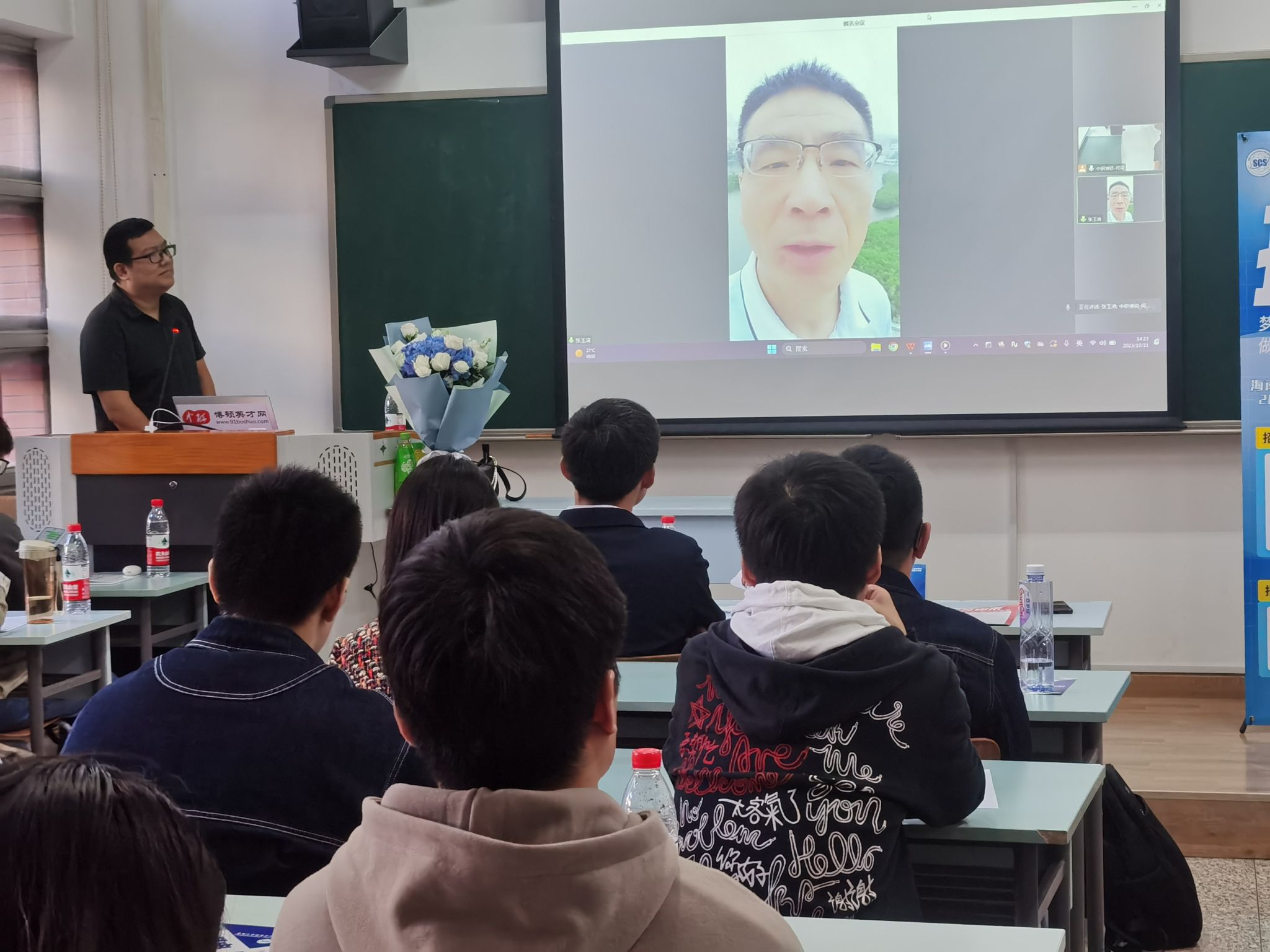 会上现场连线了世界杯体育官方网站兼职教授张玉清,张玉清教授站在世界杯体育官方网站风景优美的东坡湖侧,给大家分享了他本人为什么来到世界杯体育官方网站开展科研工作的心得体会,希望广大学子结合自身情况,选择到世界杯体育官方网站就业,为海南自贸港建设发展贡献力量。