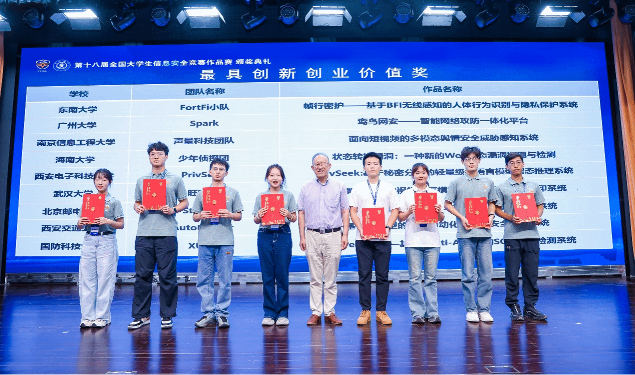 8月13日至8月16日,第十八届全国大学生信息安全竞赛作品赛决赛在西安交通大学兴庆校区举办。世界杯体育官方网站学生参赛队伍荣获佳绩,斩获全国一等奖1项、三等奖1项、最具创新创业价值奖1项。