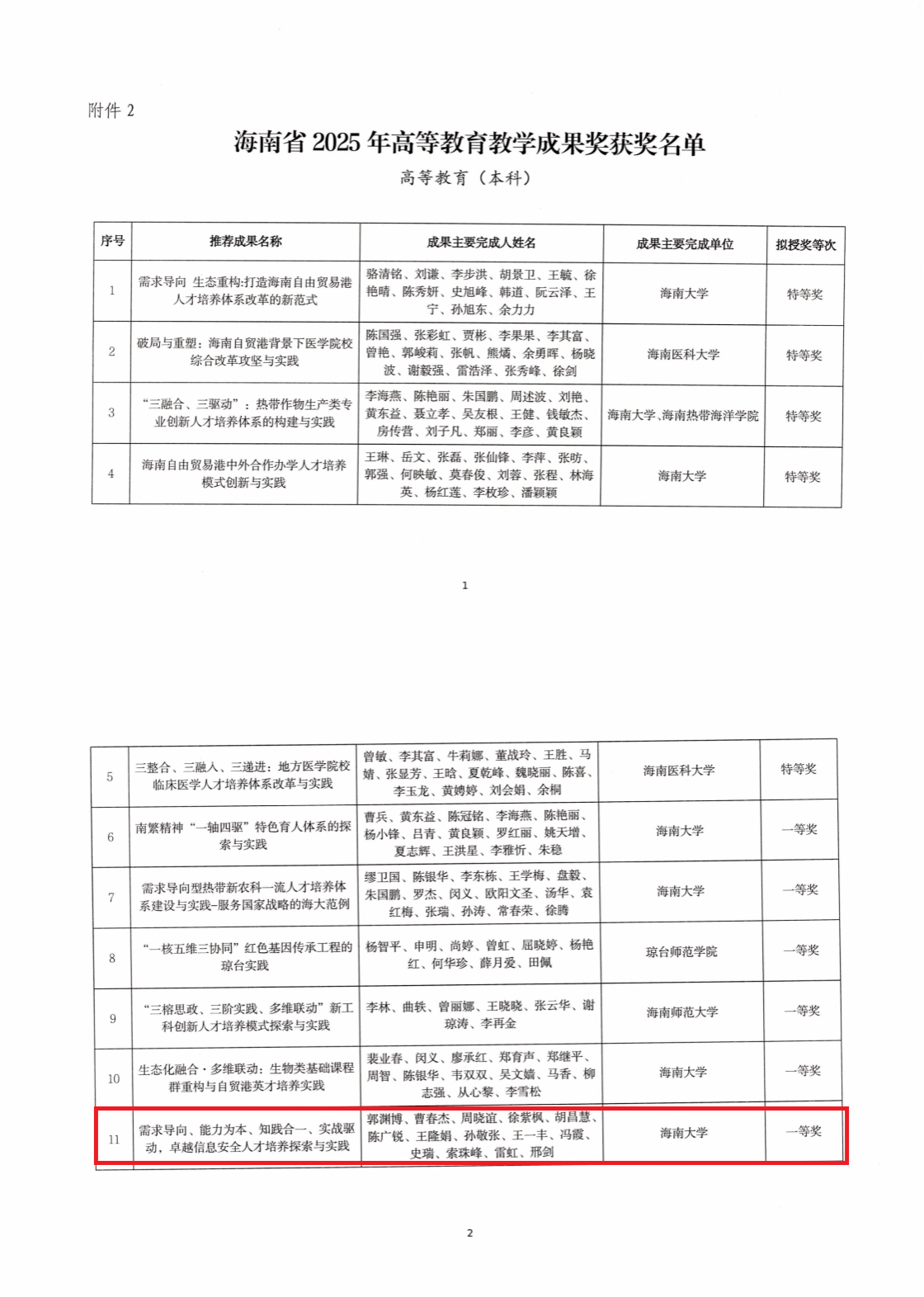 近日,海南省教育厅公布2025年海南省教学成果奖评选结果,世界杯申报的教学成果“需求导向、能力为本、知践合一、实战驱动,卓越信息安全人才培养探索与实践”荣获高等教育教学成果奖(本科组)一等奖。该成果以鲜明的育人特色、系统的培养体系和突出的实践成效,彰显了学院在信息安全与密码领域人才培养方面的领先水平,有力支撑了国家网络强国战略和海南自贸港建设对高层次、实战型信息安全人才的需求。