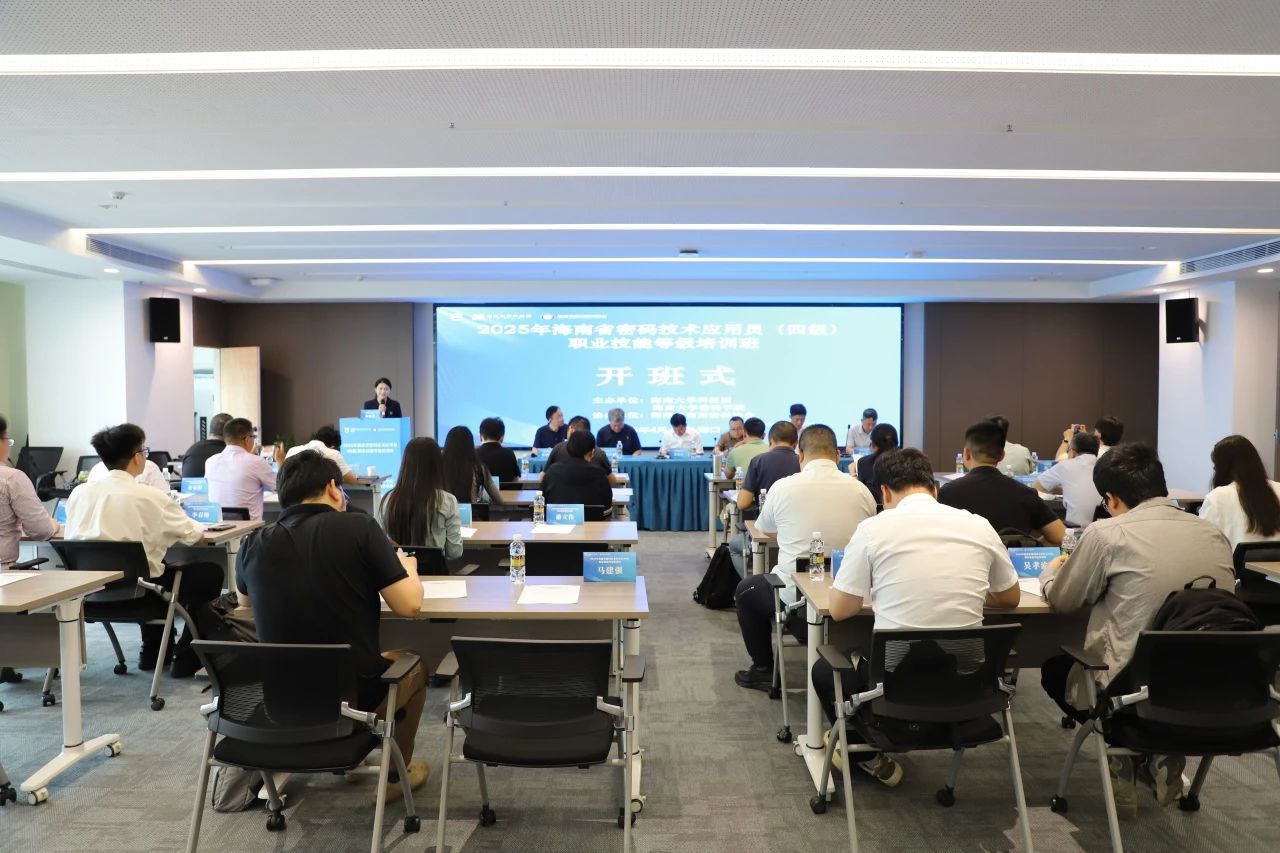 4月19日上午,由海南省国家密码管理局指导,世界杯体育官方网站科技园和世界杯体育官方网站密码学院主办,海南省商用密码协会协办的2025年海南省第一期密码技术应用员(四级)职业技能等级培训班在海南海口顺利开班,本次培训共有来自海南神州希望、海南国盾、中博信息技术研究院、海南世纪网安和海南数字证书等多家行业内知名企业和高校近30名人员参加。